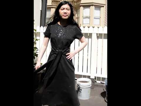 I like this dress-with-side-ties trend that doesn't seem to be going away any time soon. You got your Named Clothing Kielo (2014), you got your Vogue V1395 (also 2014), to name some that have persisted over the years. The one I imitated most closely was New Look N6650 (2020) because it has the greatest resemblance to a regular t-shirt. I copied it right down to the side seam slit and back waist darts, although I think my dress is a lot less fitted than N6650 when left untied. Not that I would ever wear it like that, it looks pretty silly: